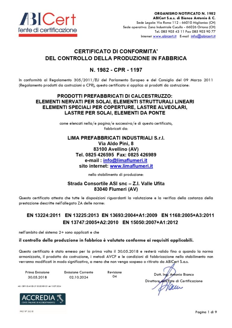 CERTIFICATO DI CONFORMITA'